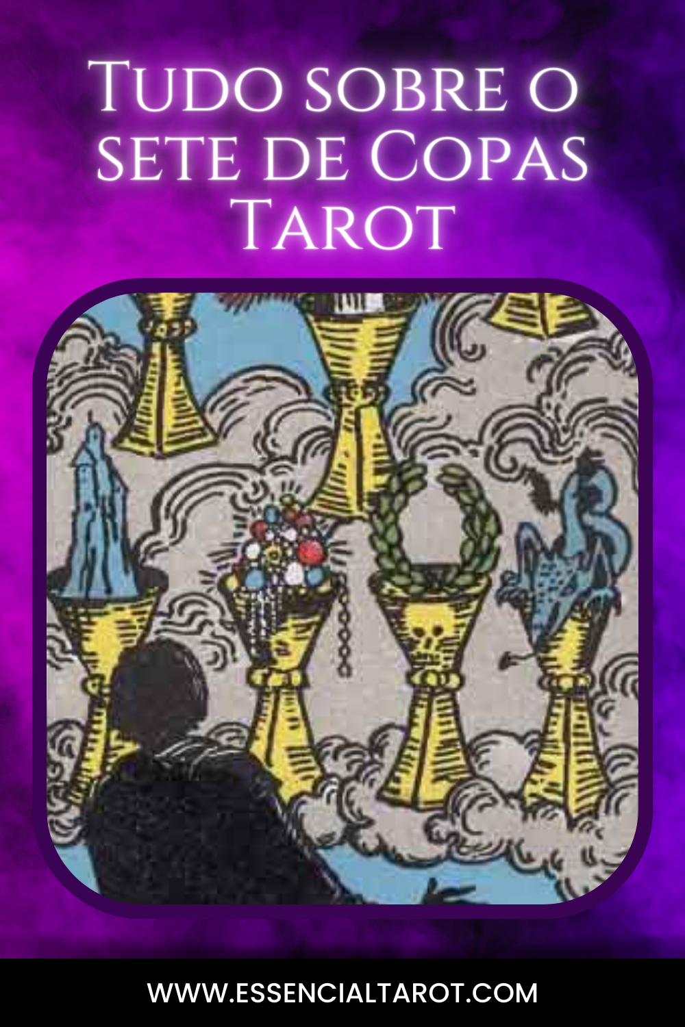 O Sete de Copas apresenta sete cálices, cada um contendo uma visão diferente, que variam de sonhos sedutores a ilusões enganosas. É uma representação visual do mundo dos desejos e fantasias, muitas vezes repleto de escolhas e possibilidades.